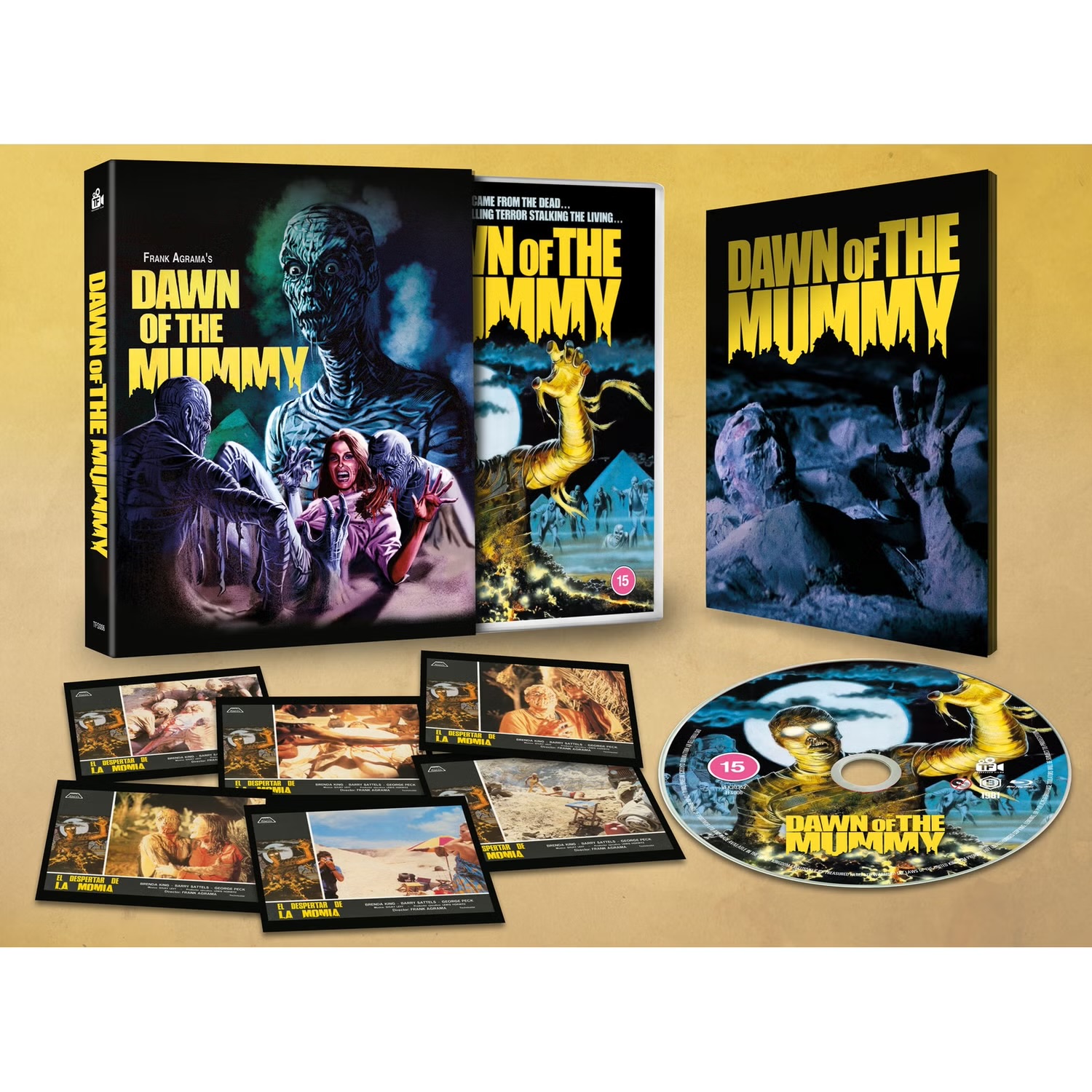Newcomer Treasured Films are making waves in the world of physical media, especially when they are putting out beautifully presented editions like Dawn Of The Mummy, which we will get into right here. The Section 3 video nasty hasn’t seen the light of day on a high definition format, until now. The new edition has been crafted to cater for us hardcore physical media collectors. It’s a hard bound set accompanied by a thick well put together booklet. A hard outer box with gorgeous newly commissioned artwork. Inside is the Scanovo case housing the Blu-ray disk. The sleeve also has two alternative artworks for you to flip at your leisure.