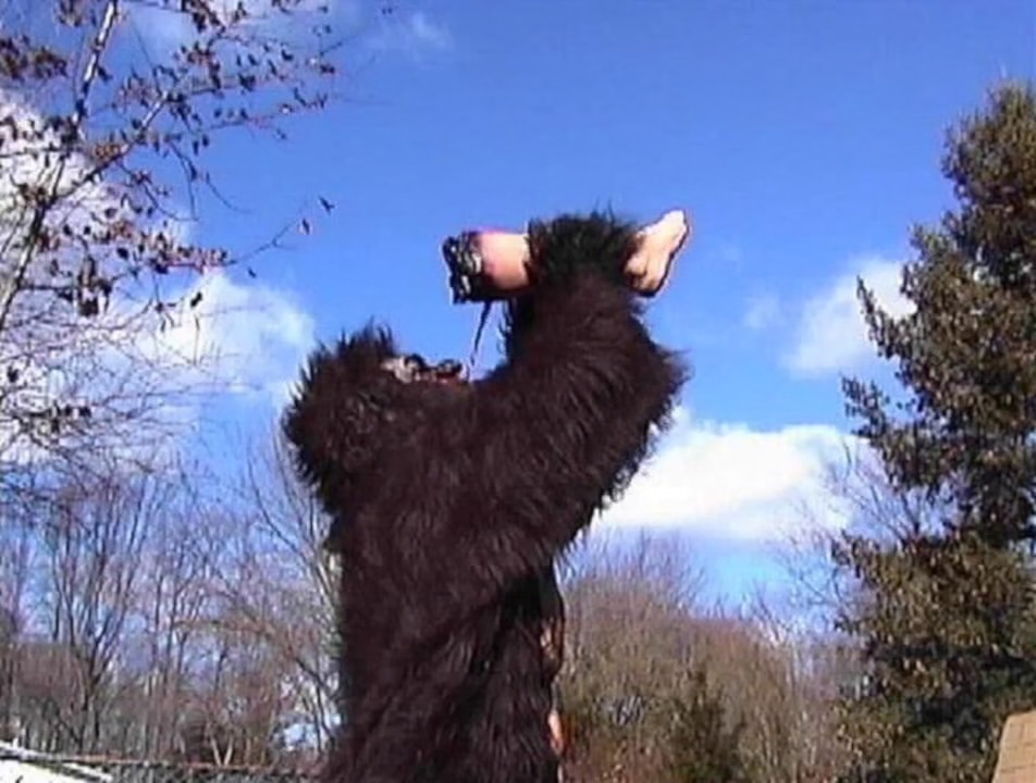 Suburban Sasquatch (2004) features a barrage of backyard chaos. The Bigfoot suit is unconvincingly glorious. It’s so obvious that it’s a guy in an awful Sasquatch mask and suit, to the point that it feels like the film’s creators are in on the joke. All shoddy costumes aside, the movie’s whole concept works. It knows what it is and what it needs to achieve: mega low-budget Bigfoot antics shot in a local suburb for SOV fans.