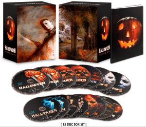Released in Scream Factory’s heyday when the label felt very special. Also long before I was region free and collected their titles. The fans were served up this excellent Halloween Boxset which was complete eleven years ago. That is not the case now after the latest trilogy. The Myer’s boxset boasted 15 disks including one DVD. At the time this was a big deal for collectors alike and is now long out of print.